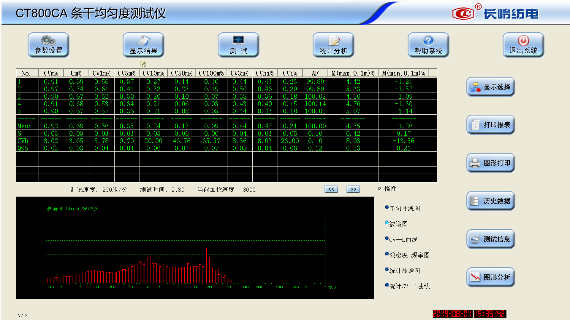 CT800CA條干均勻度測(cè)試分析儀是一種測(cè)試和分析化纖長(zhǎng)絲條干不勻程度、考核化纖長(zhǎng)絲質(zhì)量、指導(dǎo)長(zhǎng)絲生產(chǎn)的高精密儀器。該儀器全自動(dòng)測(cè)試,測(cè)試信息豐富,能提供多項(xiàng)數(shù)據(jù)和圖形指標(biāo)評(píng)價(jià)紗線(xiàn)質(zhì)量信息,十分有利于長(zhǎng)絲生產(chǎn)企業(yè)過(guò)程控制和提高化纖長(zhǎng)絲的質(zhì)量。