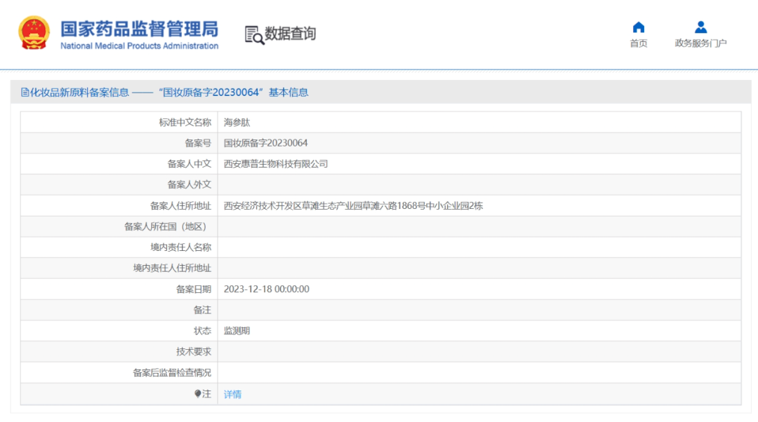12月20日,惠普生物自主創(chuàng)新研發(fā)的化妝品新原料“海參肽”,成功通過國家藥品監(jiān)督管理局化妝品新原料備案(備案號(hào):國妝原備字20230064)。